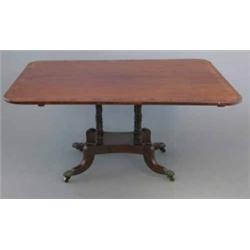 An early 19th century mahogany rectangular top breakfast table, with rosewood banded top on four...