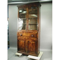 An early 19th century mahogany secretaire bookcase, the doors with carved