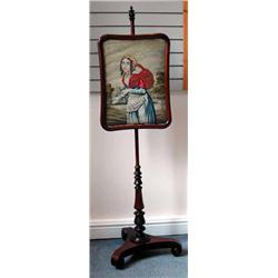 An early 19th century rosewood adjustable tapestry pole screen with turned column and tripod base