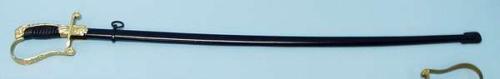 An early 20th Century German parade sword made for the Argentine Army. With engraved handle and gilt bronze handguard, black patinated metal scabbard. 37" long. 400-500