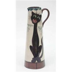 An early 20th century Devonware tapering cylindrical milk jug, painted with a cat, inscribed 'The Devonshire Nightingale' 10ins £80-120