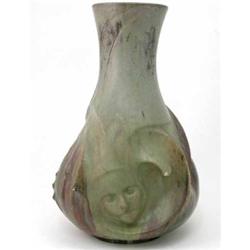 An early 20th century French Art pottery vase, with swirling forms and face moulded within the bo...