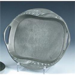 An early 20th century Kayserzinn pewter tray, the oval end pierced with handles and the sides cast..