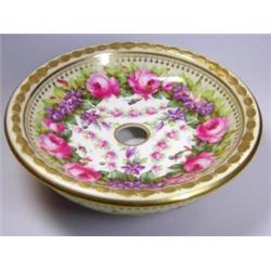 An early 20th century Spode soap dish and strainer painted by J Worrall with pink roses and purple clematis within a gilt husk border, printed marks, 19cm diameter (2) £60-90