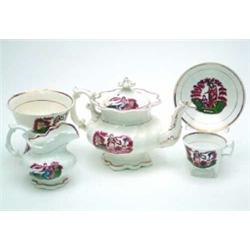 An early Victorian bone china 15-piece part tea set, including teapot printed Faith, Hope and Charity vignettes, in puce and enamels £180-220