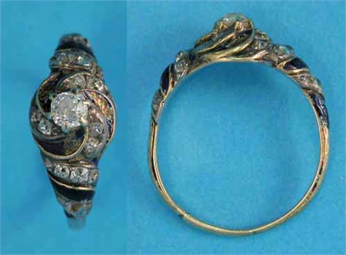 An early Victorian diamond set gold and blue enamel ring £100-120
