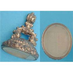 An early Victorian gold plated fob seal, with chased foliate decoration and intaglio carved crest £100-150