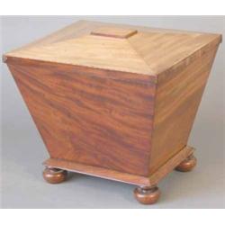 An early Victorian mahogany cellaret, of plain sarcophagus form on bun feet, 1ft 10ins...