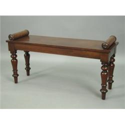 An early Victorian mahogany window seat, with end scrolls on turned legs, 92cm long Est. 50...