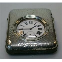 An electroplated 'Goliath' watch by Argentan, the 6.5cm enamel dial with Roman numerals and Arabic subsidiary seconds dial, Swiss lever movement, contained in a silver clad leather case, Birmingham 1908 £150-200