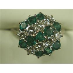 An emerald and diamond cluster ring set in 18ct white gold, size L