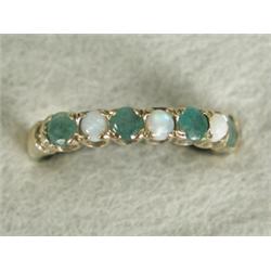 An emerald and opal half eternity ring set in 9ct gold, size L 1/2 Est. 100/150