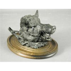 An inkwell in the form of a boar's head, on an oval plinth base, 22cm (with pottery well) Est. 10...