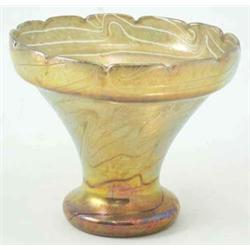 An iridescent flared glass vase, probably Loetz, green iridescence with undulating swirls, 7.25in...