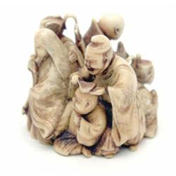 An ivory carved figure group, Meiji, at various activities, each in engraved kimono, signed, 1.25ins £150-200