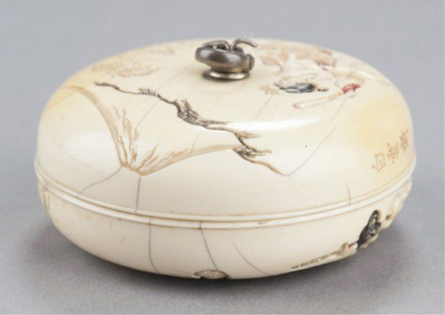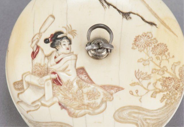 We are able to ship Netsuke from our gallery for this auction. Unfortunately we will not be able to ship any ivory to areas where its import is forbidden by law. Shipping ability and cost is contingent upon destination, insurance, and weight of the package. We charge an additional handling fee of 10/box.
