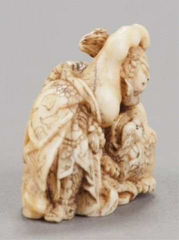 We are able to ship Netsuke from our gallery for this auction. Unfortunately we will not be able to ship any ivory to areas where its import is forbidden by law. Shipping ability and cost is contingent upon destination, insurance, and weight of the package. We charge an additional handling fee of 10/box.