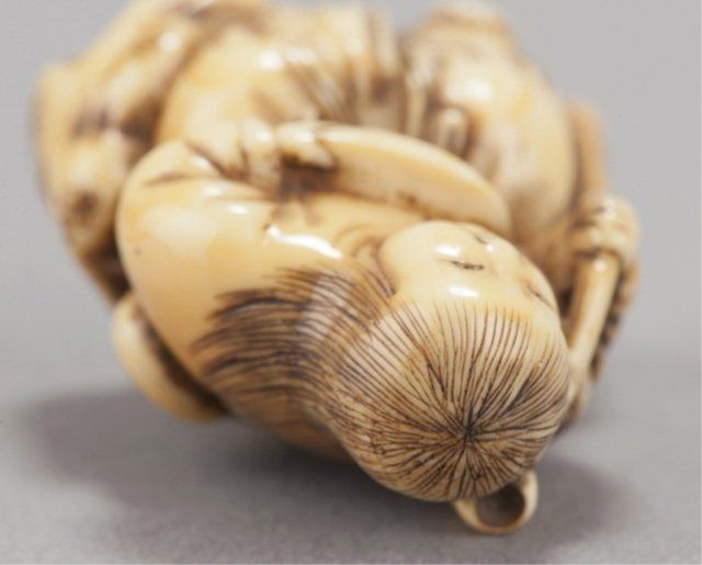 We are able to ship Netsuke from our gallery for this auction. Unfortunately we will not be able to ship any ivory to areas where its import is forbidden by law. Shipping ability and cost is contingent upon destination, insurance, and weight of the package. We charge an additional handling fee of 10/box.