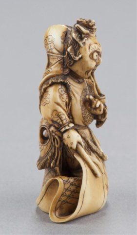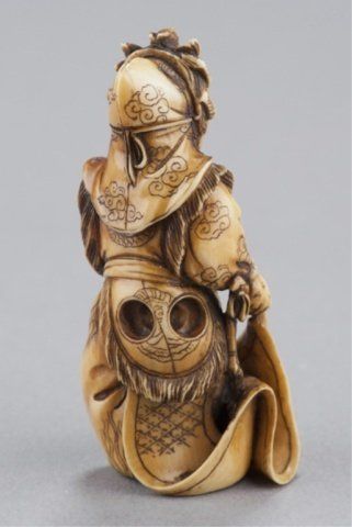 We are able to ship Netsuke from our gallery for this auction. Unfortunately we will not be able to ship any ivory to areas where its import is forbidden by law. Shipping ability and cost is contingent upon destination, insurance, and weight of the package. We charge an additional handling fee of 10/box.
