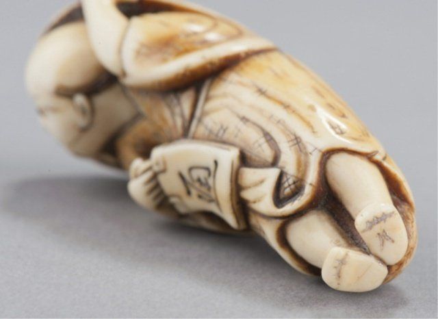 We are able to ship Netsuke from our gallery for this auction. Unfortunately we will not be able to ship any ivory to areas where its import is forbidden by law. Shipping ability and cost is contingent upon destination, insurance, and weight of the package. We charge an additional handling fee of 10/box.