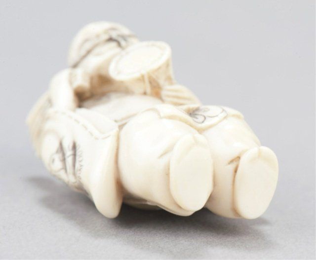 We are able to ship Netsuke from our gallery for this auction. Unfortunately we will not be able to ship any ivory to areas where its import is forbidden by law. Shipping ability and cost is contingent upon destination, insurance, and weight of the package. We charge an additional handling fee of 10/box.