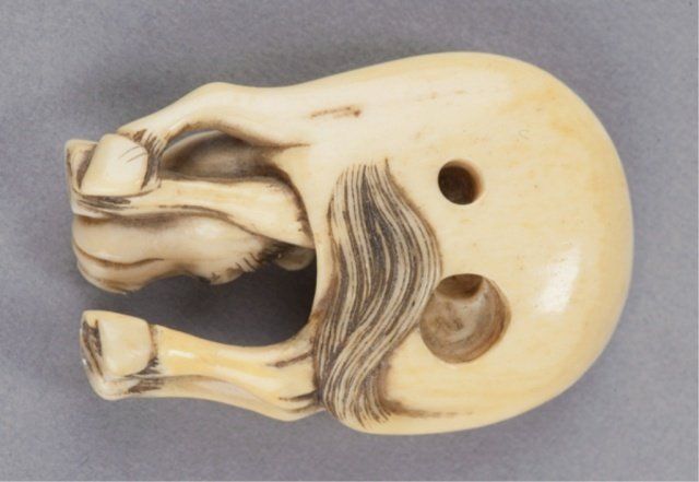 We are able to ship Netsuke from our gallery for this auction. Unfortunately we will not be able to ship any ivory to areas where its import is forbidden by law. Shipping ability and cost is contingent upon destination, insurance, and weight of the package. We charge an additional handling fee of 10/box.