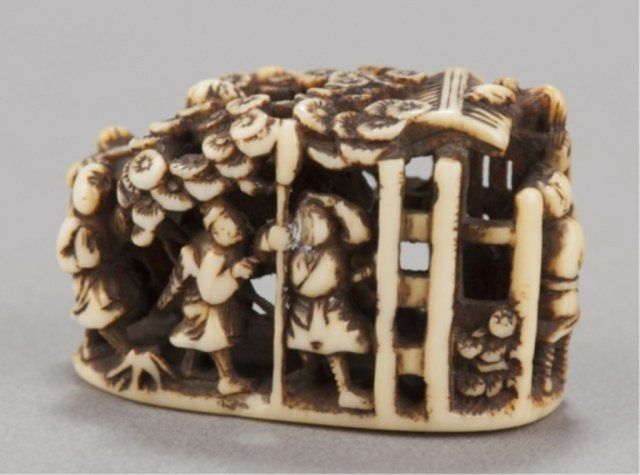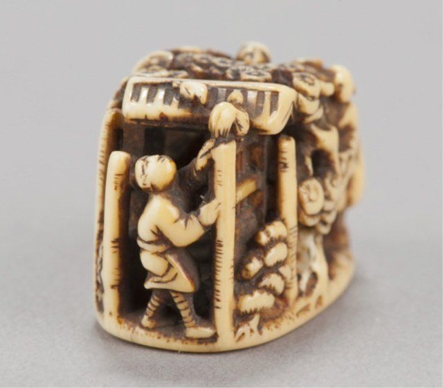 We are able to ship Netsuke from our gallery for this auction. Unfortunately we will not be able to ship any ivory to areas where its import is forbidden by law. Shipping ability and cost is contingent upon destination, insurance, and weight of the package. We charge an additional handling fee of 10/box.