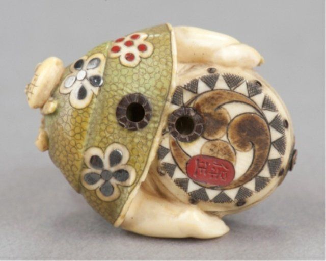 We are able to ship Netsuke from our gallery for this auction. Unfortunately we will not be able to ship any ivory to areas where its import is forbidden by law. Shipping ability and cost is contingent upon destination, insurance, and weight of the package. We charge an additional handling fee of 10/box.