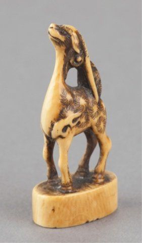 We are able to ship Netsuke from our gallery for this auction. Unfortunately we will not be able to ship any ivory to areas where its import is forbidden by law. Shipping ability and cost is contingent upon destination, insurance, and weight of the package. We charge an additional handling fee of 10/box.