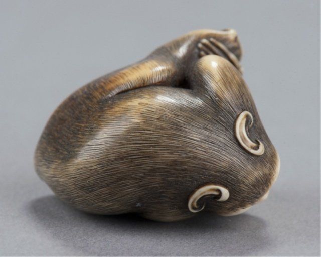 We are able to ship Netsuke from our gallery for this auction. Unfortunately we will not be able to ship any ivory to areas where its import is forbidden by law. Shipping ability and cost is contingent upon destination, insurance, and weight of the package. We charge an additional handling fee of 10/box.
