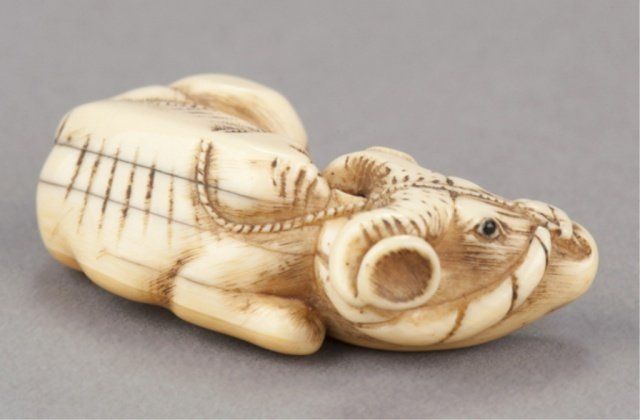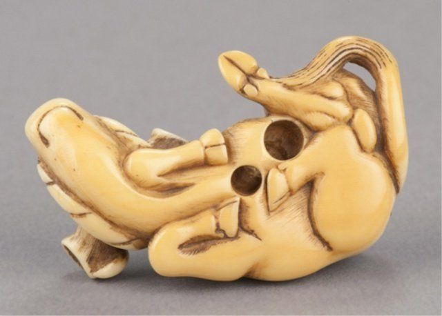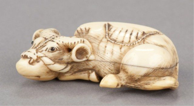 We are able to ship Netsuke from our gallery for this auction. Unfortunately we will not be able to ship any ivory to areas where its import is forbidden by law. Shipping ability and cost is contingent upon destination, insurance, and weight of the package. We charge an additional handling fee of 10/box.