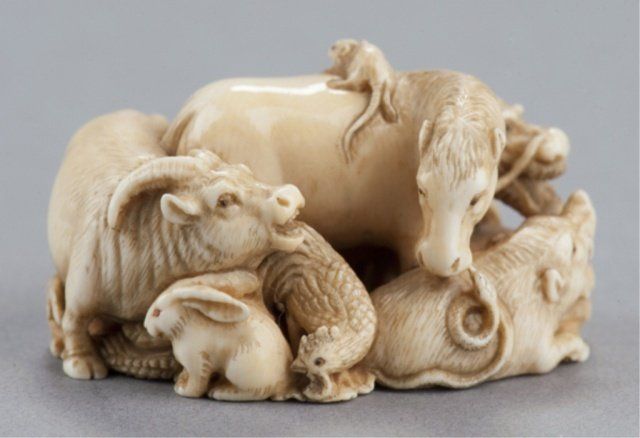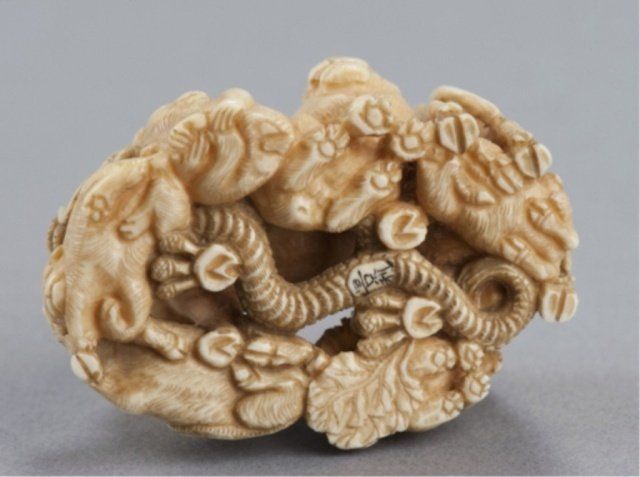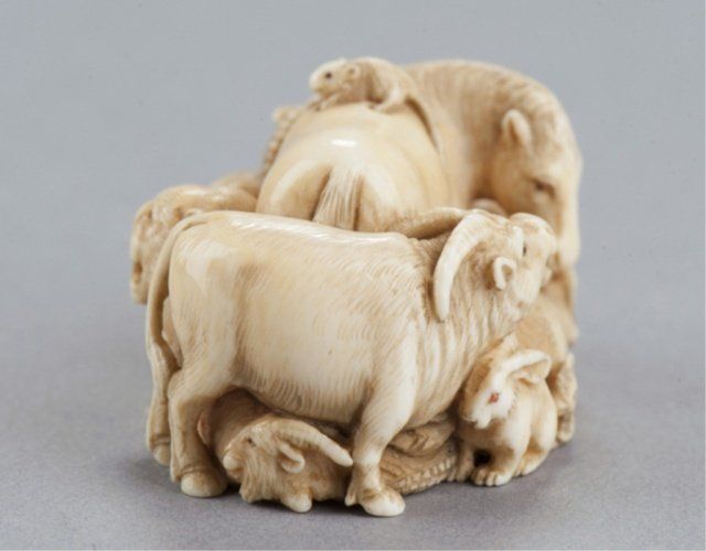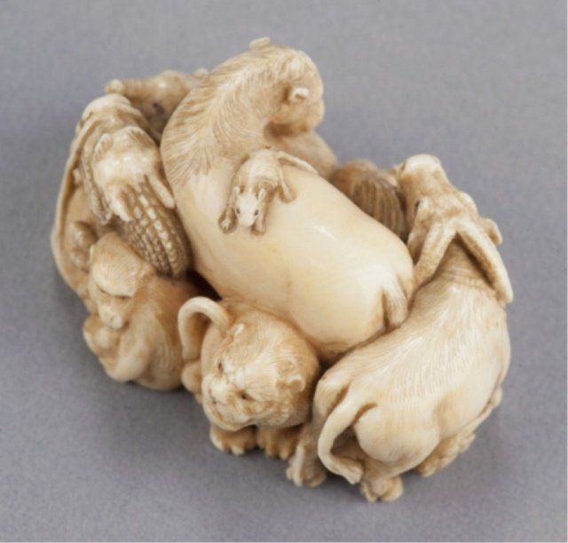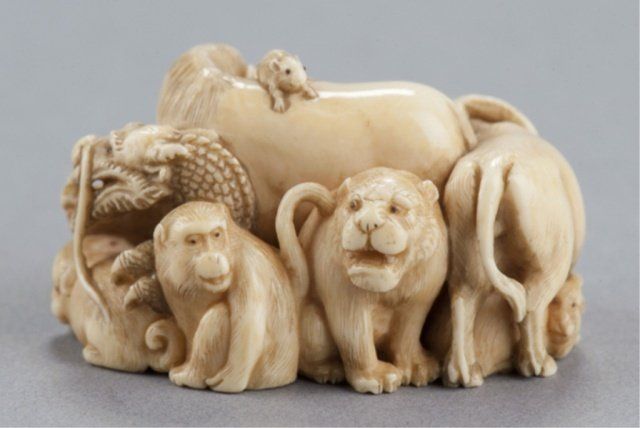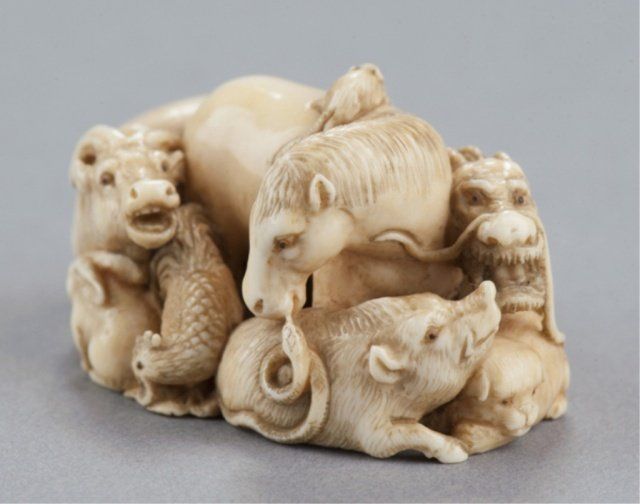 We are able to ship Netsuke from our gallery for this auction. Unfortunately we will not be able to ship any ivory to areas where its import is forbidden by law. Shipping ability and cost is contingent upon destination, insurance, and weight of the package. We charge an additional handling fee of 10/box.