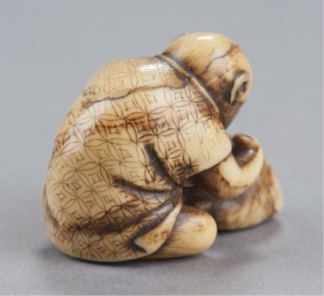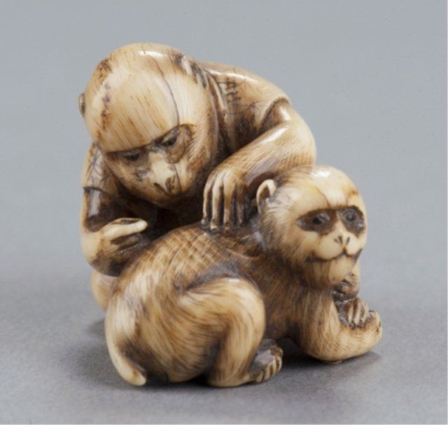 We are able to ship Netsuke from our gallery for this auction. Unfortunately we will not be able to ship any ivory to areas where its import is forbidden by law. Shipping ability and cost is contingent upon destination, insurance, and weight of the package. We charge an additional handling fee of 10/box.