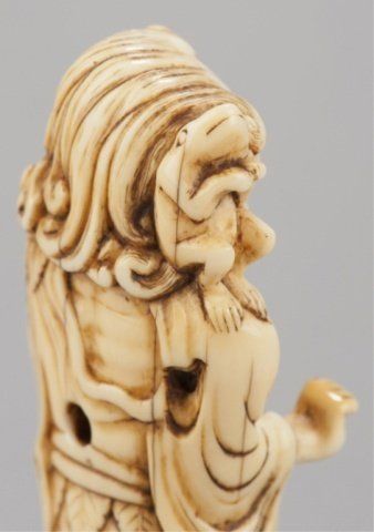 Mid 18th century. Standing with a toad perched in a most peculiar way on the right shoulder leaning against the side of the fat face of the sage, the left sleeve hangs down to form the larger of the two cordholes. 4 1/4in (10.9cm). Provenance: Sotheby's, London, April 29, 1968; Lot 260.