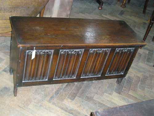 An linenfold-carved blanket chest, H 56cms 110.5cms £60-80