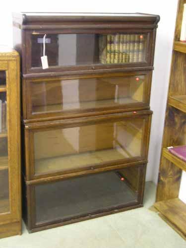 An oak Globe Wernicke style four-section bookcase (base deficient), H 137cms W 87cms £80-120