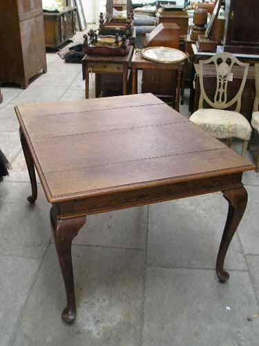 An oak extending dining table, on cabriole legs (with two matched leaves), L 176cms max W 100cms £80-120