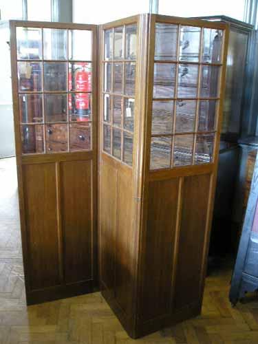 An oak-panelled three-fold draught screen, glazed, H 183cms W 52cms (each panel) £200-300