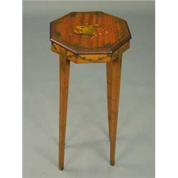 An octagonal satinwood stand, with painted...