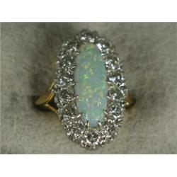 An opal and diamond marquise cluster ring size L 1/2 (opal 16 x 6mm, total diamond weight approx 1.4cts) Est. 800/1000