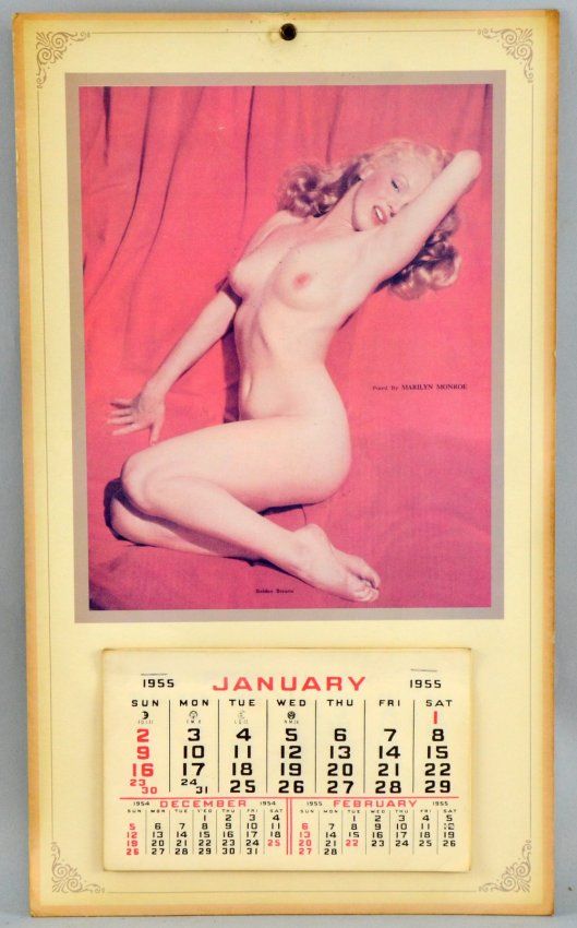An original Marilyn Monroe calendar for 1955 showing a colour nude portrait of Monroe by Tom Kelly, titled Golden Dreams, with complete calendar stapled to the foot of the card 17 x 10in. (43 x 25cm)
