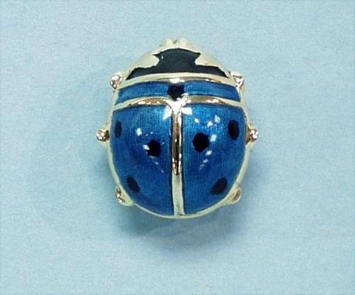 An unusual 14 kt. yellow gold and enamel brooch in the form of a lady bug with blue and black enamel details. 200-300