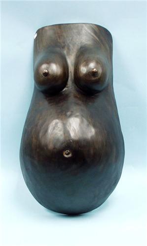 An unusual hand carved African wood torso of a pregnant woman. 14" wide, 25" high.