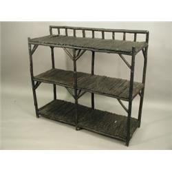 An unusual rustic twig stand with three shelves, 107 x 36 x 96cm high