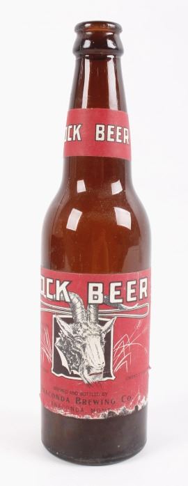 This lot contains a Circa 1930's Anaconda Brewing Company - Bock Beer, bottle and stock paper advertisement. Both the bottle, and the ad show the bock goat mascot popping his head out of a sort of window. The advertisement reads; "Rocky Mountain - Bock Beer - Back Again - Bottle And Draft - Anaconda Brewing Co.". The bottles neck label simply reads "Bock Beer", the main label reads "Bock Beer - Contains Not More Than 4% Alcohol By Weight - Internal Revenue Tax Paid - Brewed And Bottled By Anaconda Brewing Co. - Anaconda, Montana". The lot shows good original condition - The bottle is empty, with no cap. The Stock paper advertisement has been preserved in a mylar sleeve.