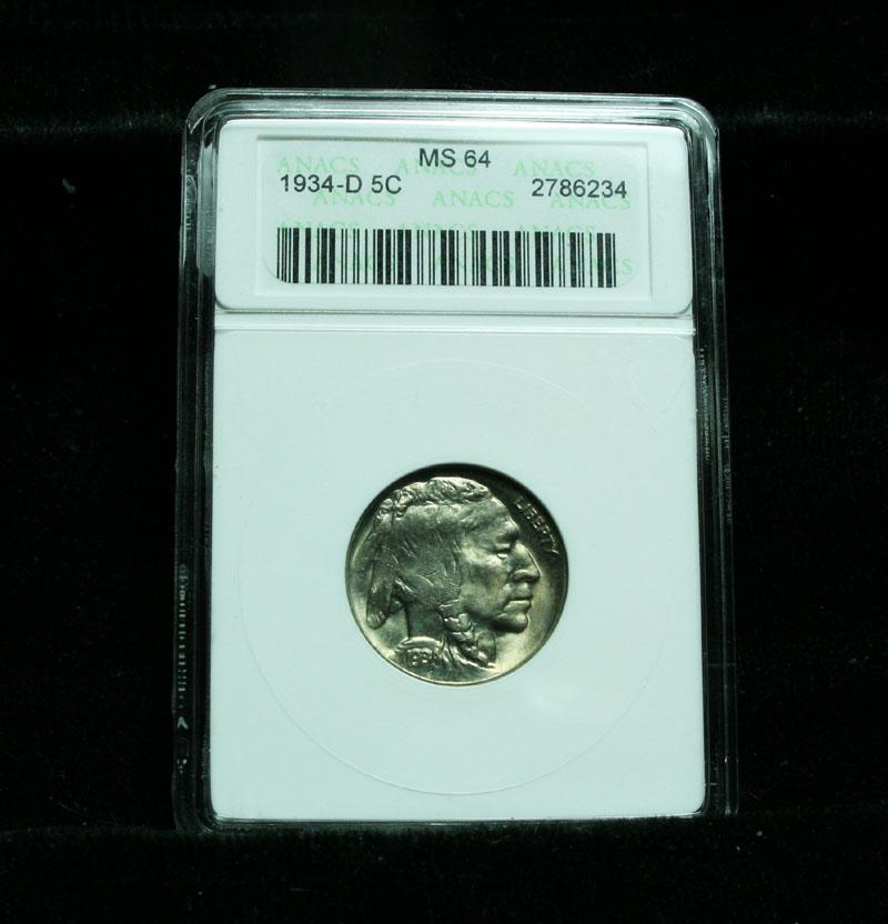 A very nice example of this Denver minted Buffalo. Graded ms64 by Anacs. The Wholesale Greysheet lists ms64 at $210. Estimated Value $225