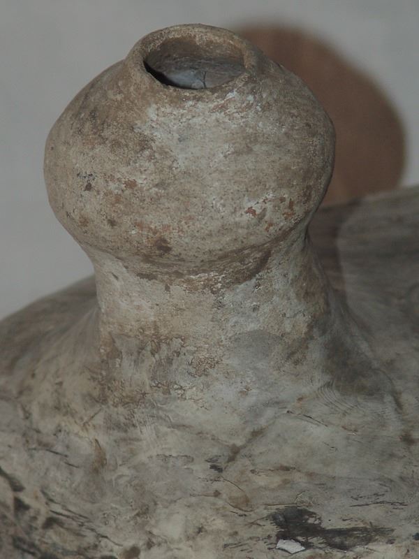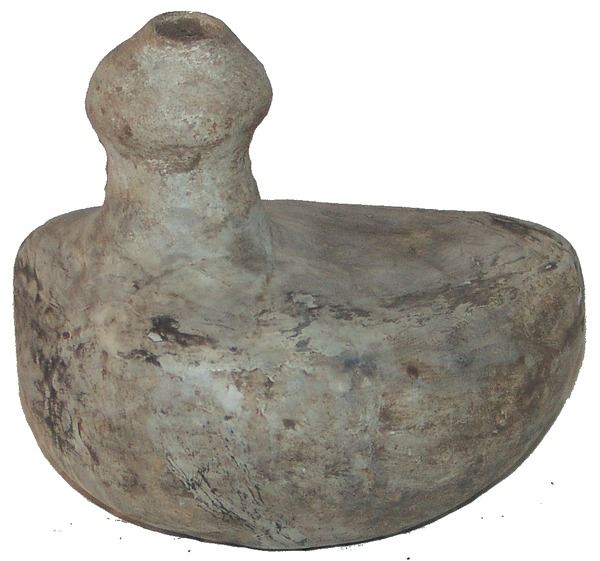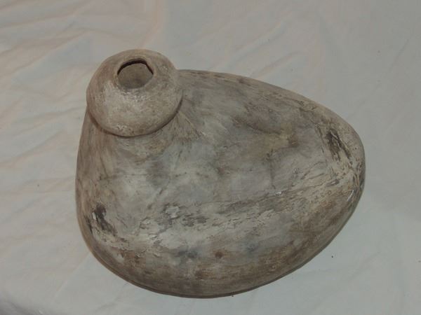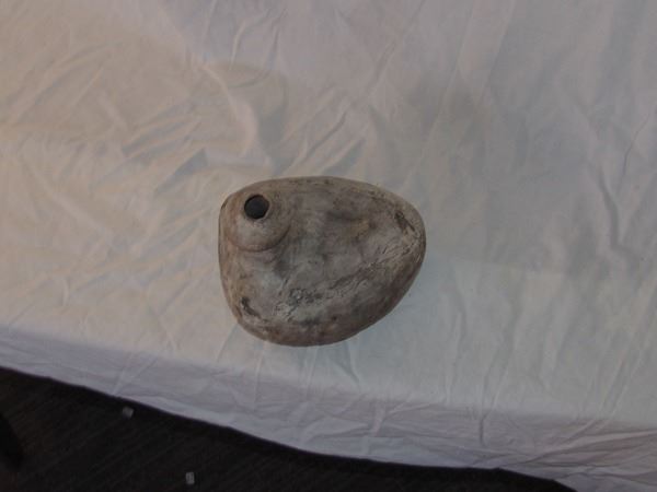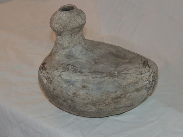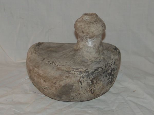 Prehistoric 7" x 8" x 7" Interesting, (probably Roosevelt) black-on-white pottery duck vessel that appears to be in the middle of a restoration project. Good condition, sturdy and intact.