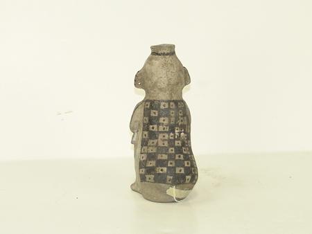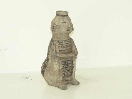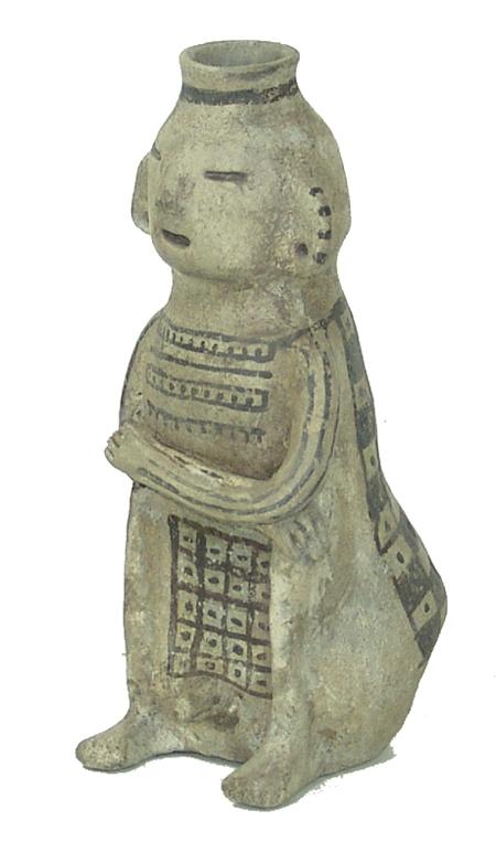 Circa Prehistoric, Very rare Reserve black-on-white human figure with crossed arms, exaggerated posterior, protruding phallus and simple facial features. Ex: Foster Museum collection. Excellent condition, minor restoration. 7-1/2" x 3"