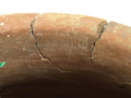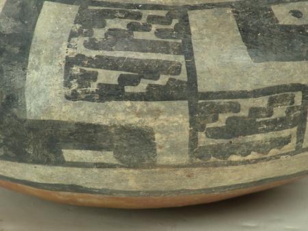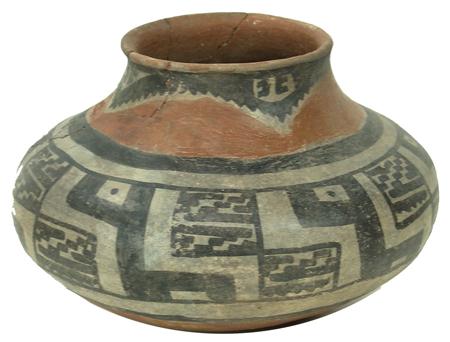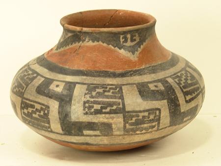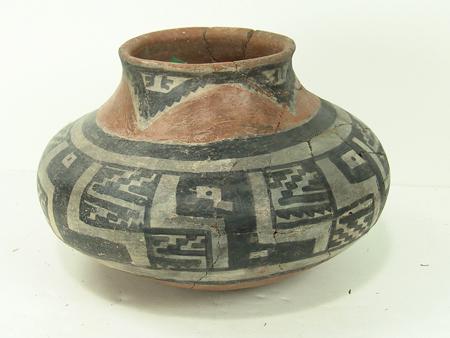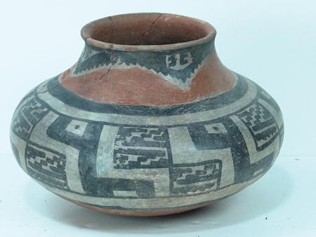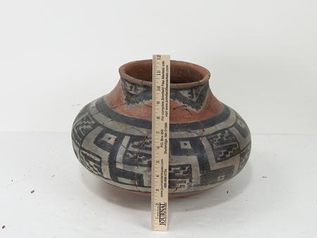 Circa Prehistoric, Large polychrome water jar with slightly curled rim. Very good condition, professionally restored. 9" x 13"