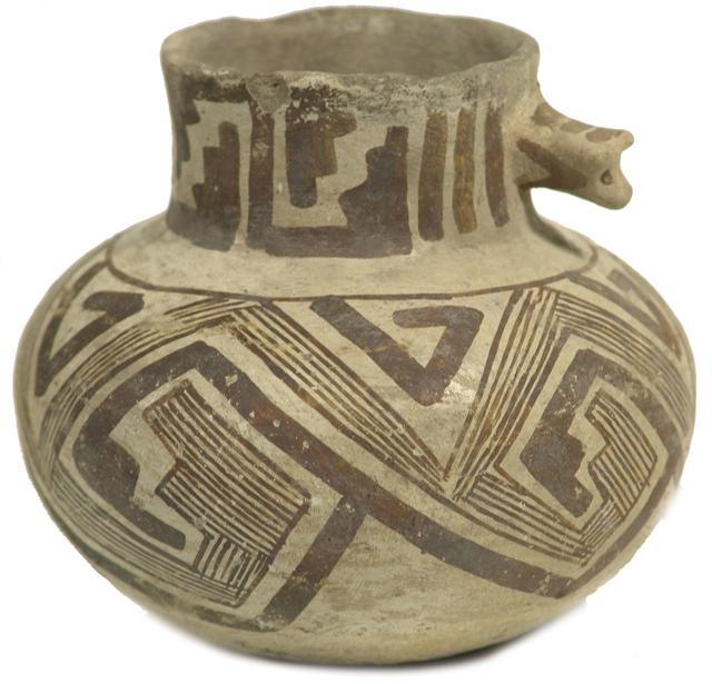 Prehistoric, Rare black-on-white Tularosa dog head pitcher; professionally restored. 4-3/4" x 5-1/2"